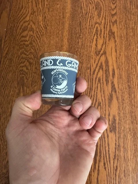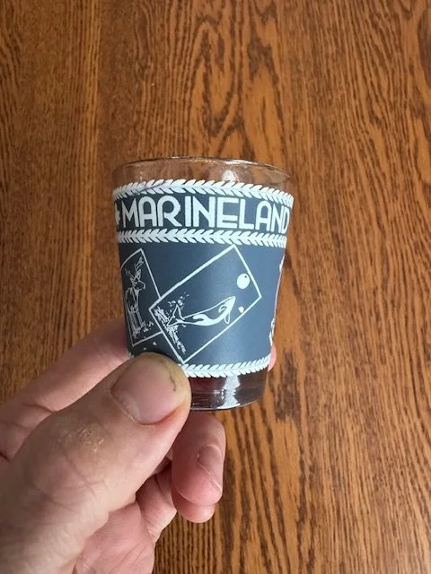 This week I uncovered a Marineland shot glass. It however is not just another “everyone loves Marineland” shot glass. This one is from the late 1960s when the park was first marketed as Marineland and Game Farm. The once proud international tourist attraction was lauded for decades as a great family getaway until many complaints and subsequent charges arrived around animal cruelty that forced the attraction to close in 2024. The site is currently for sale and awaits redevelopment as the land is now very desirable.